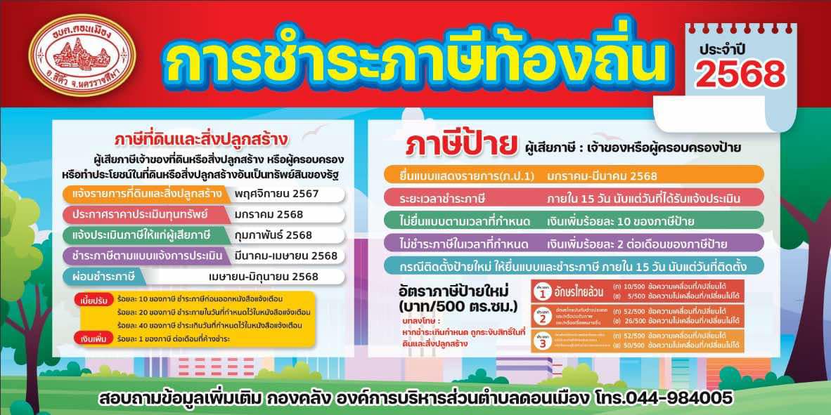 ข่าวประชาสัมพันธ์ เรื่อง การชำระภาษีที่ดินและสิ่งปลูกสร้าง ประจำปี พ.ศ.2568 |