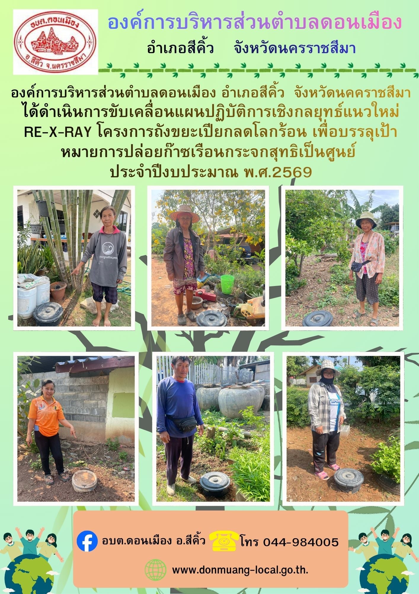 องค์การบริหารส่วนตำบลดอนเมือง อำเภอสีคิ้ว จังหวัดนคคราชสีมา ได้ดำเนินการขับเคลื่อนแผนปฏิบัติการเชิงกลยุทธ์แนวใหม่ RE-X-RAY โครงการถังขยะเปียกลดโลกร้อน เพื่อบรรลุเป้าหมายการปล่อยก๊าซเรือนกระจกสุทธิเป็นศูนย์ ประจำปีงบประมาณ พ.ศ.2569 |